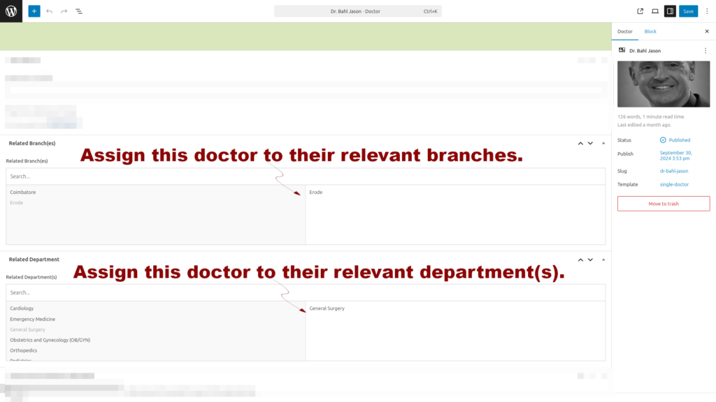 This is the next level of ‘Admin Control’. With simple clicks, you link this ‘doctor’ to their specific ‘departments’ and ‘branches’ of practice.