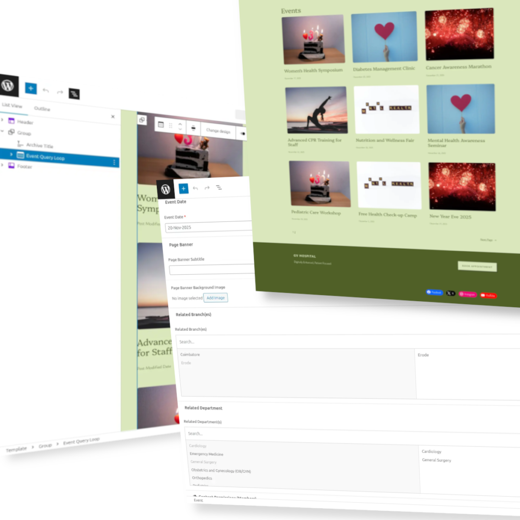 The Challenge: An event might be relevant to one, or many, of your hospital branches. You need a simple way to tag an event to its relevant locations (e.g., “Erode,” “Coimbatore”) right from the event post, without needing a developer to make the connection.